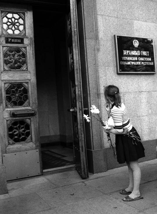 At the time, we didn't pay attention to whether or not someone was filming it. And a few years later, on one of the anniversaries of the adoption of the Declaration, either in 1995 or 2000, the newspaper "Voice of Ukraine" suddenly came into my hands. On the first page there was a photo of a girl looking at the half-open door of the Verkhovna Rada, and under it a caption that on the day of the adoption of the Declaration a girl was handing out flowers to deputies. Something "touched" me both in the photo and in the information. And suddenly I realized - this is our Nastya !!! AT! And I remember the dress - my older sister gave it to me from her daughter. And there weren't many children there that day.